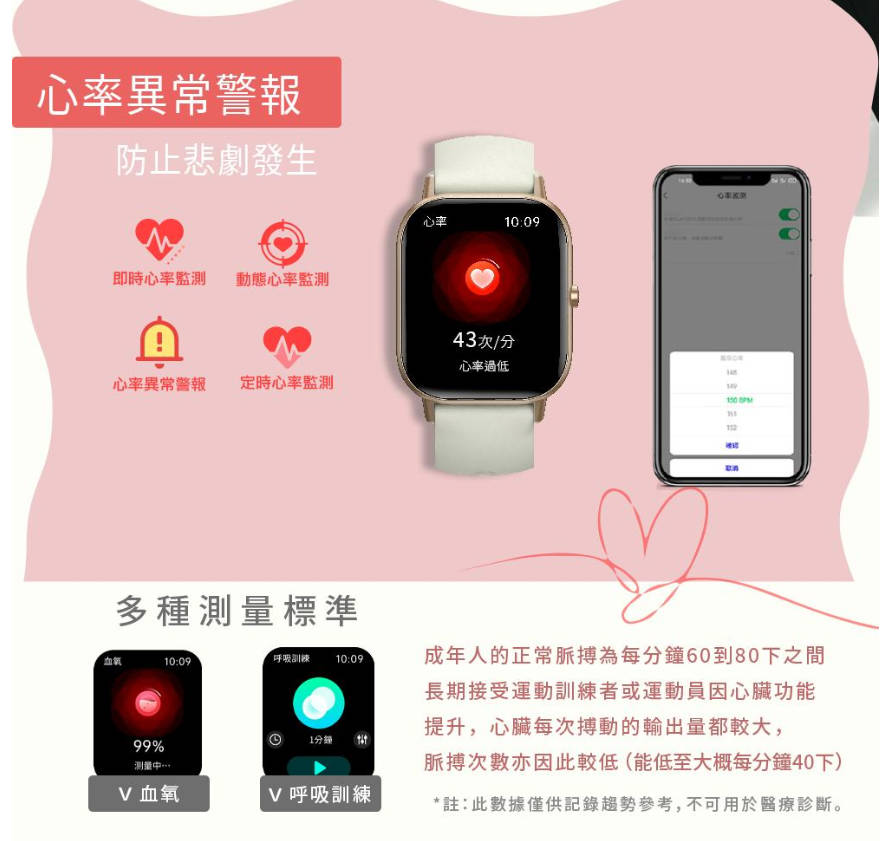 ■全天候心率監測|精準守護健康:透過HRV心率變異監測與睡眠偵測,全天候追蹤心率變化,助你隨時掌握身體狀況。支援動態、即時、定時監測,精準度高達95%以上,並具備異常提醒功能,貼心守護你的健康。