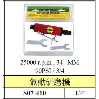 產品規格: ● 夾頭尺寸 6 mm ● 轉速 25000 R.P.M ● 長度 140 mm ● 進氣頭尺寸 1/4 ● 進氣管尺寸 1/4 主要用途: ●可用於鐵工、木工、輪胎業之表面處理。 產品材質:鋅合金、碳鋼。