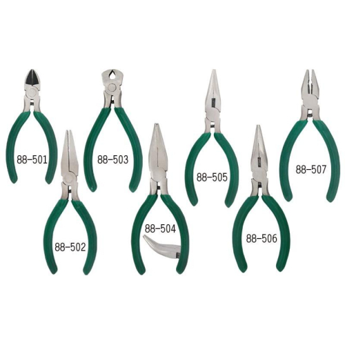 電信、電器、美勞、飾品、模型等使用。 刃口高週波熱處理。 舒適防滑膠柄。省力彈簧。 主要用途: ●細小手工藝、電子零件及DIY等使用。 產品特色: ●絕緣、防滑聚氯乙烯包覆。 ●握柄附套,操作時較不易滑脫。 產品材質:聚氯乙烯、碳鋼。