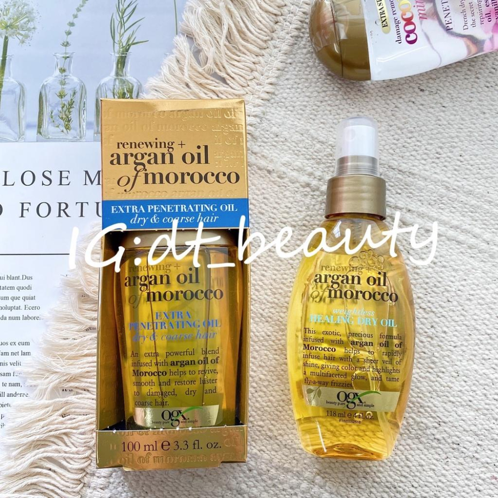 OGX 摩洛哥護髮油 柔順髮必備, 打結頭髮救星 免沖洗護髮油, 洗髮後吹至7、8分乾, 取少量於掌心輕推擦於髮尾, 再繼續吹乾 讓受損乾燥和粗糙的頭髮恢復滑順及光澤 Penetrating Oil 淺藍色一般款 : 清爽 一般髮質適用 深藍色---加強款 Extra Penetrating Oil 深藍色加強款 :滋潤 適用乾性與染燙後受損髮質及所有髮質 Thick + Full Biotin & Collagen Weightless Healing Oil :豐盈款 適用細軟稀疏髮質 Coconut miracle oil 椰子奇蹟水 加強款 適合極度受損毛躁頭髮 Coconut oil (噴霧款) 椰子油輕盈護髮 適合毛躁的髮絲 Weightless Healing Dry Oil (噴霧款) :清爽款 無負擔 適用毛躁髮質 一般髮質 ---- ‼美國目前加強型和一般型到貨皆無紙盒包裝,若不介意再下單喔~ ‼因護髮油成分天然,萃取成分的濃度顏色會因為季節、溫度差異造成顏色濃度不一定一致, 所以每一批訂購,若是不同時期製作,或多或少會因此造成液體顏色略有差異, 能接受的買家再下單,請買家三思唷 ---- Purifying + Charcoal Detox Shampoo 木炭 洗髮乳385ml 這款適用於纖細稀薄髮質,頭髮扁塌的髮質 味道是淡淡的竹子的味道 ---- #OGX #OGX護髮油 #護髮油 #免沖洗護髮 #護髮產品 #摩洛哥堅果油 #摩洛哥堅果護髮油 #OGX髮油現貨 #OGX髮油 #OGX護髮油現貨 #現貨 #CDWNHAIR