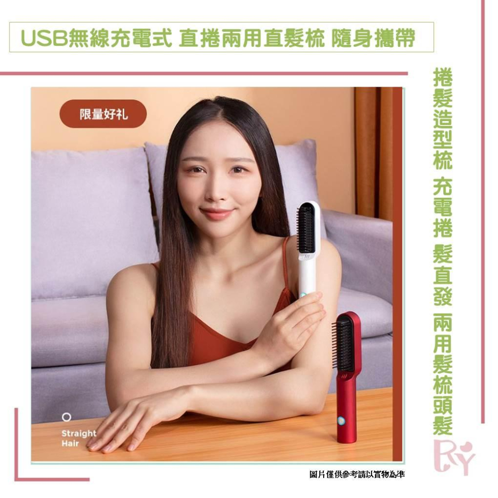 USB無線充電式 出國攜帶直捲兩用直髮梳 捲髮造型梳 充電捲髮直發 兩用髮梳 頭髮拉直器