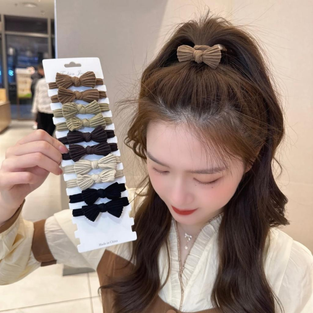 蝴蝶結髮繩 高馬尾髮圈 【10入】原創設計簡約百搭 不傷頭髮飾 高馬尾頭繩 高彈力加粗 橡皮筋髮圈