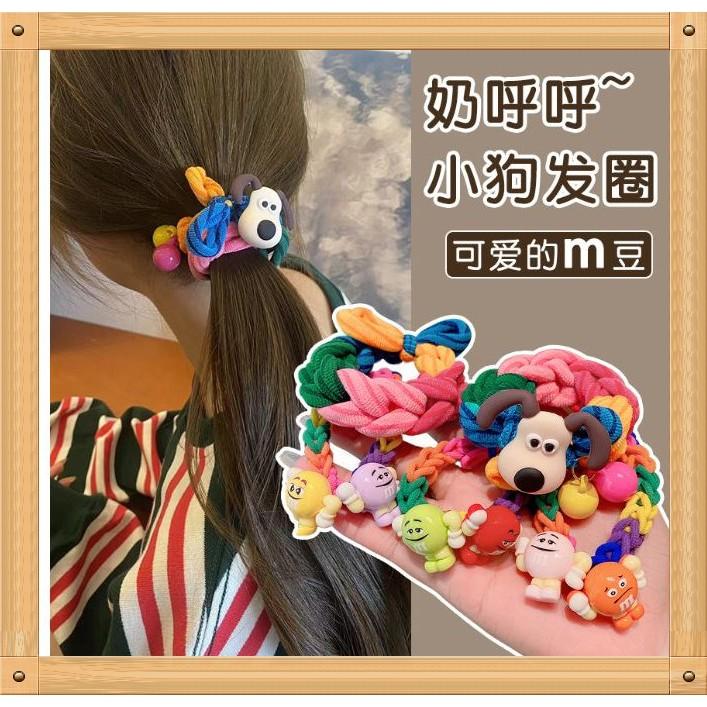 卡通可愛無敵狗狗加粗彩虹髮圈 女高彈性 紮頭髮 髮繩 丸子頭髮圈