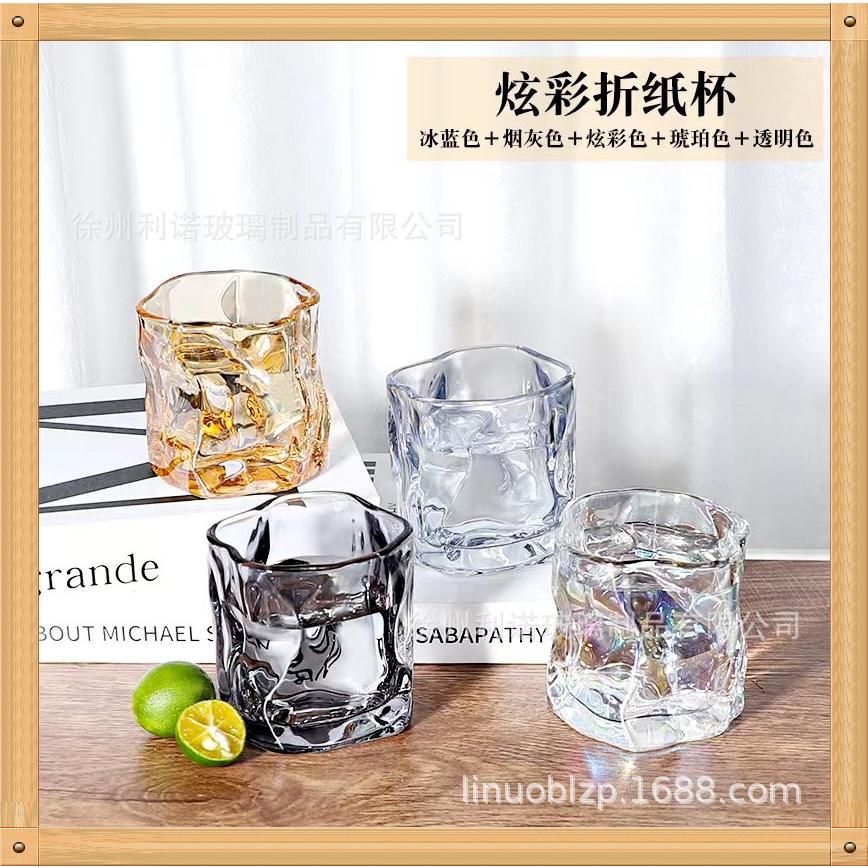 扭曲威士忌杯 Ins簡約 日式扭扭杯 方形玻璃水杯 扭曲威士忌杯 異行杯子玻璃杯咖啡杯炫彩彩虹不規則玻璃杯