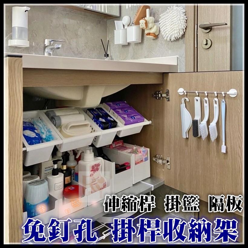 伸縮桿置物架 收納籃 置物架 掛籃 日式收納 浴室收納 櫥櫃收納 分層置物架 廚房收納 掛勾收納