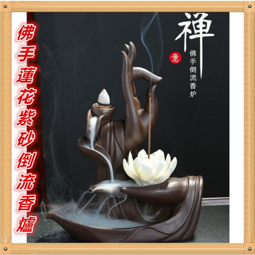 佛手蓮花 紫砂倒流香爐 禪意佛手檀香爐 家用室內 仿古香薰爐 大號 倒流香 插香 兩用