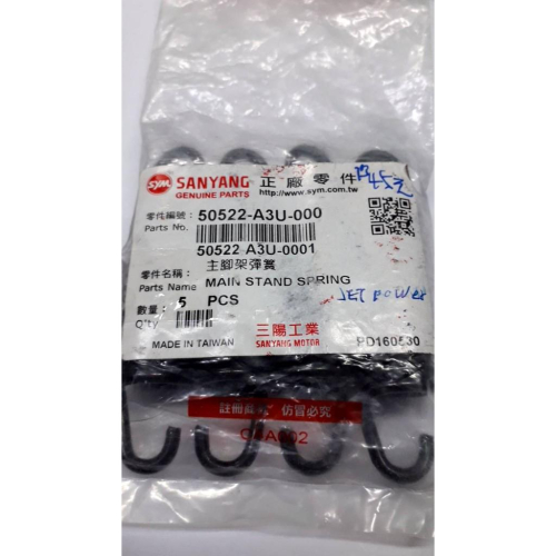三陽原廠中柱支架彈簧A3U 內容物:1包5條 1條45元 適用機種:JET POWER