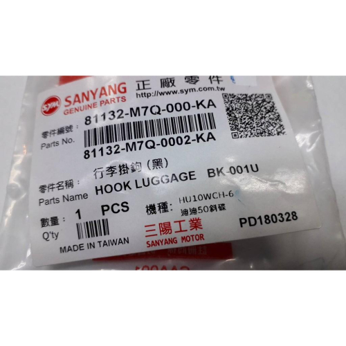 三陽原廠行李掛勾(黑色) 適用機種:MIO 100/高手100 購買前請確認物品是否正確