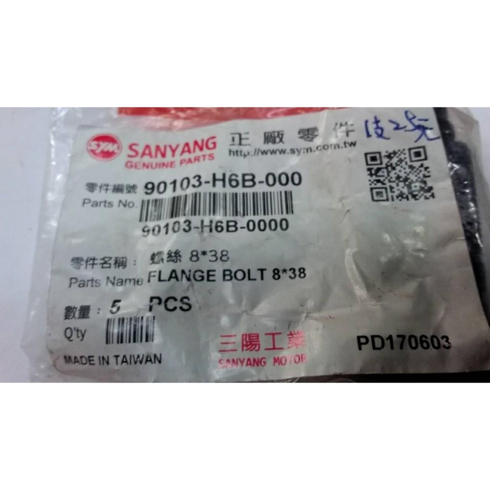 三陽原廠排氣管螺絲(特殊) 規格:8x38 內容物:1包有5支,1支25元,是1支25元。