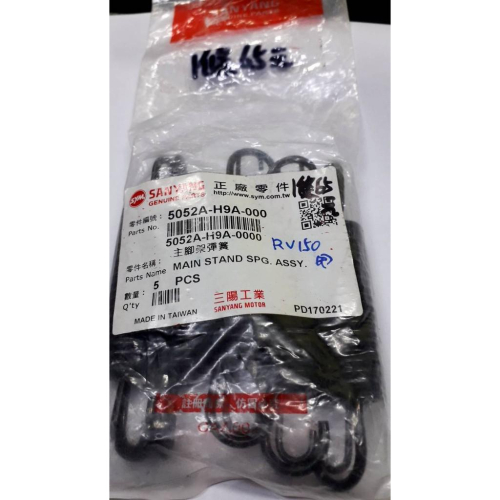 三陽原廠中柱支架彈簧H9A 內容物:1包5條 1條65元 適用機種:RV150