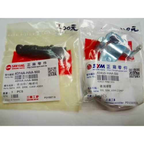 三陽原廠後剎車臂+後剎車凸輪 適用機種:迪爵125部分車款 /高手125部分車款 /心情125部分車款