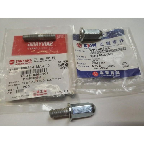 三陽原廠排氣管頭固定螺帽螺栓組 內容物:螺栓(M8*40L)X1 螺帽(12MM)X1