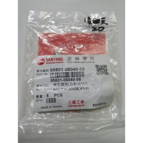 三陽原廠空濾總成固定螺絲 內容物:1包5支 1支20元 規格:M6X40MM