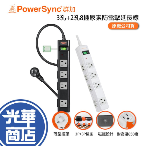 ⭕高耐燃3孔+2孔8插尿素防雷擊延長線(磁鐵固定)黑色 1.8M
