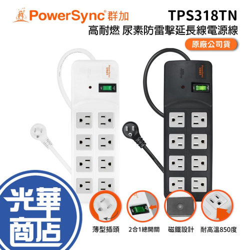 ⭕高耐燃1開8插尿素防雷擊延長線-白色(磁鐵固定) 1.8M
