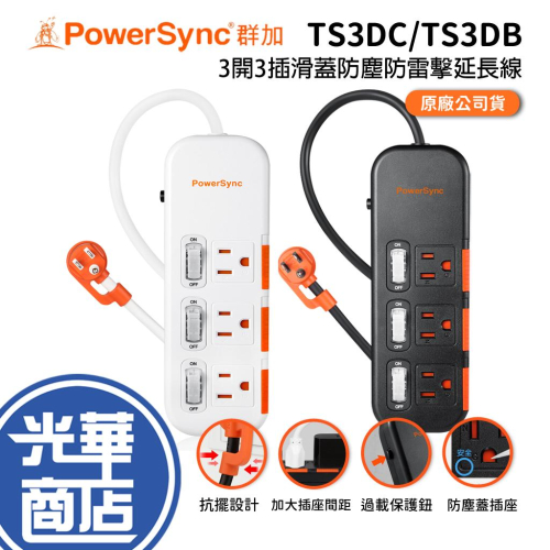 🔸 Powersync 群加 3開3插 滑蓋防塵防雷擊延長線 1.8M 白 (TS3DB318)