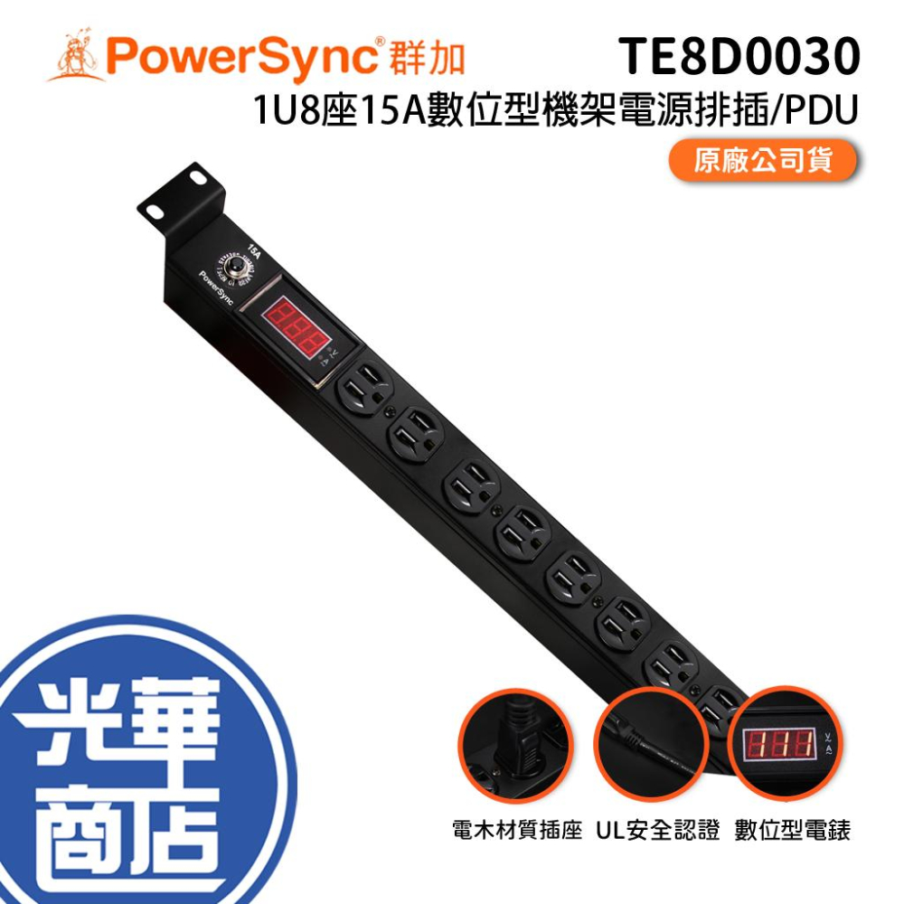 PowerSync 群加 TE8D0030 1U8座 15A數位型機架電源排插 3M