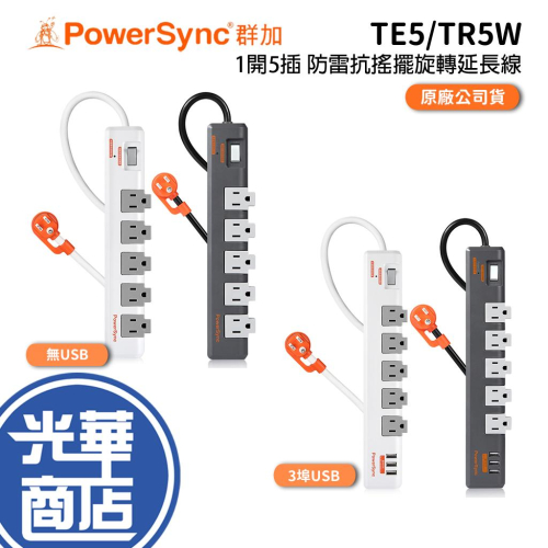 PowerSync 群加 1開5插 3埠 USB 防雷抗搖擺旋轉延長線 1.8m 包爾星克 延長線 光華商場