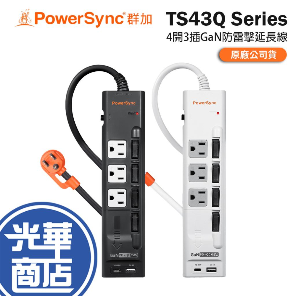 ● 品名:4開3插GaN快充防雷擊延長線