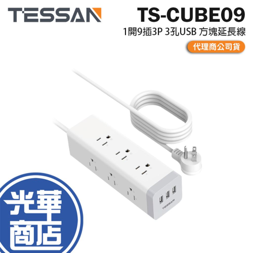.品 名:TESSAN 1開9插3P 3孔USB方塊延長線