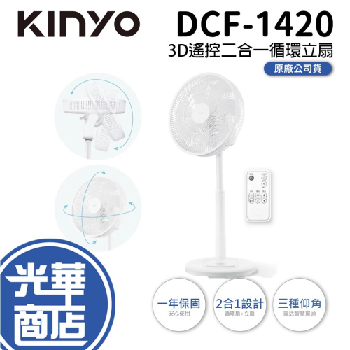 KINYO 耐嘉 DCF-1420 3D遙控二合一循環立扇