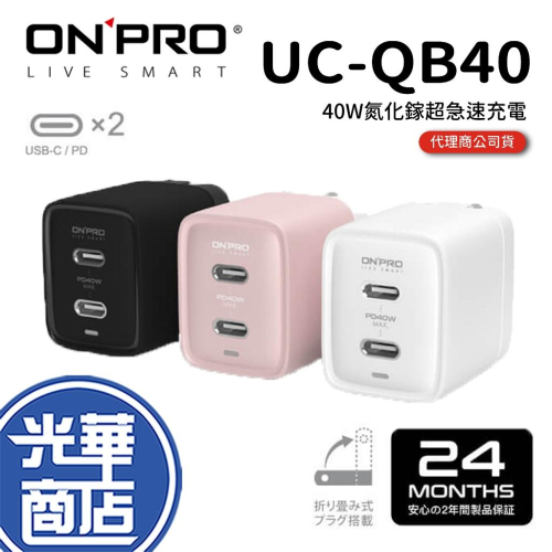 ONPRO UC-QB40 GAN 40W氮化鎵超急速充電器 冰雪白 / 石墨黑 / 珊瑚粉