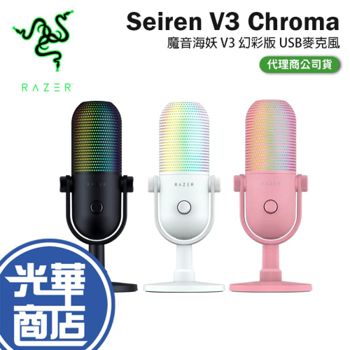 Razer Seiren V3 Chroma 一枝獨秀,這是擁有 RGB 燈光效果自訂功能的專業級 USB 麥克風,讓你以全新層次呈現畫面和聲音。它具備實況互動燈光效果和多功能輕觸靜音感應器,可針對遊戲、實況和聊天提供你所需的控制、清晰度和酷炫光彩。