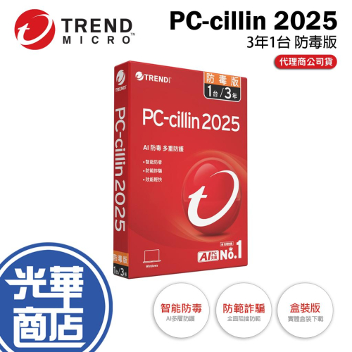 PC-cillin 2025 防毒版 三年一台 防毒軟體 (標準盒裝)