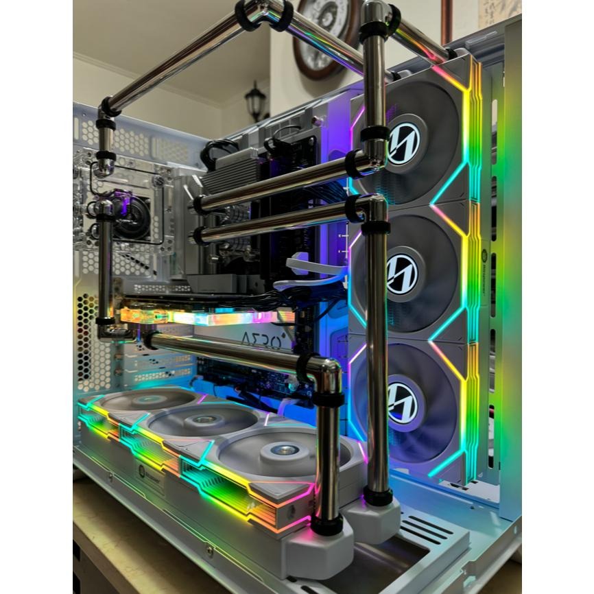 商品為手工訂製依照主機板CPU規格量身訂做 照片展示為金屬鋼管 也可選擇透明PETG管材配置