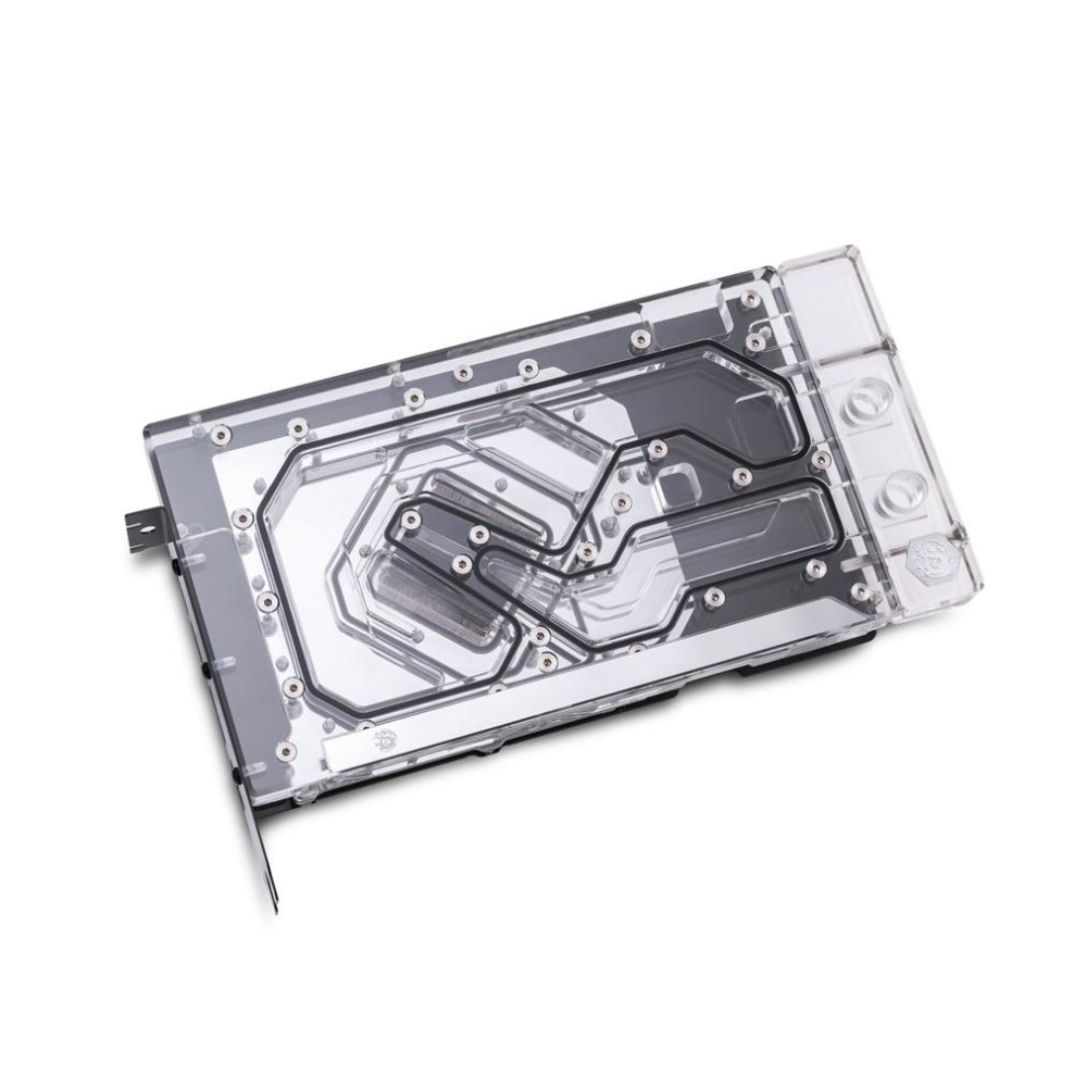水冷頭能完整包覆整張顯卡,另外在銅質底板上還有鍍鎳和鉻層,並經過精心雕塑,使其與 GPU 和 VRM 之間擁有最大的接觸面積。我們還預先貼了導熱片讓使用者更安裝方便水冷頭。頂層以耐用的壓克力材質製成,配上 Bitspower 的 Digital RGB LED 燈條,這可讓您的電腦系統擁有令人讚嘆的視覺外觀。