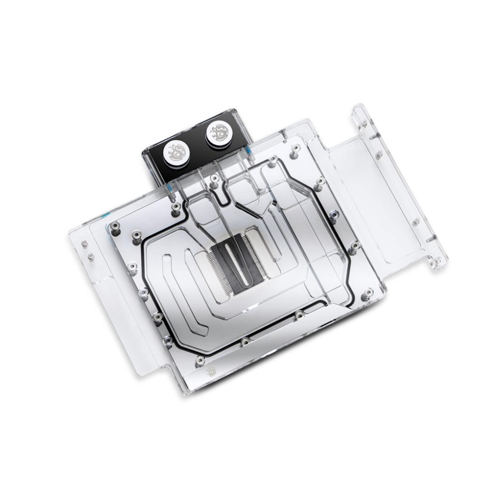 水冷頭可完整包覆整張顯卡,另外在銅質底板上還施以鍍鎳和鉻層,並經過精心雕塑,使其與 GPU 和 VRM 之間擁有最大的接觸面積。頂層以耐用的壓克力材質製成,配上 Bitspower 推出的 Digital RGB LED 燈條,這可讓您的電腦系統擁有令人讚嘆的視覺外觀。
