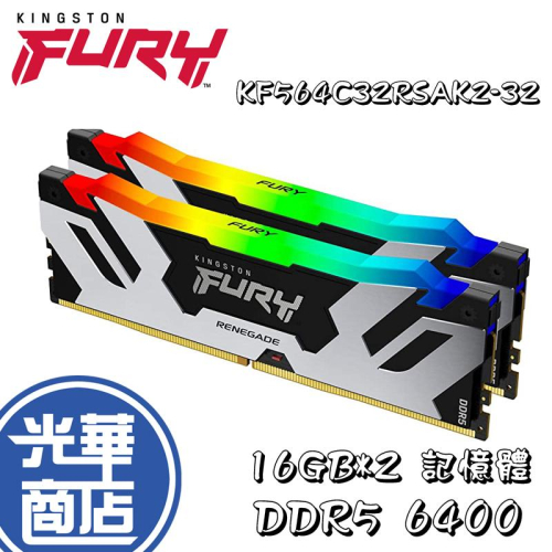 Kingston 金士頓 FURY Renegade 反叛者 DDR5 6400 32GB(16GB*2) RGB桌上型超頻記憶體