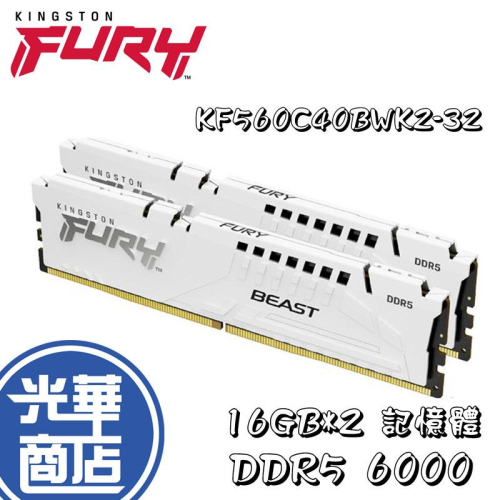 Kingston 金士頓 FURY Beast 獸獵者 DDR5 6000 32GB(16GBx2) 桌上型超頻記憶體-白色