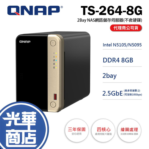 Qnap 威聯通 TS-264-8G 2Bay NAS 伺服器