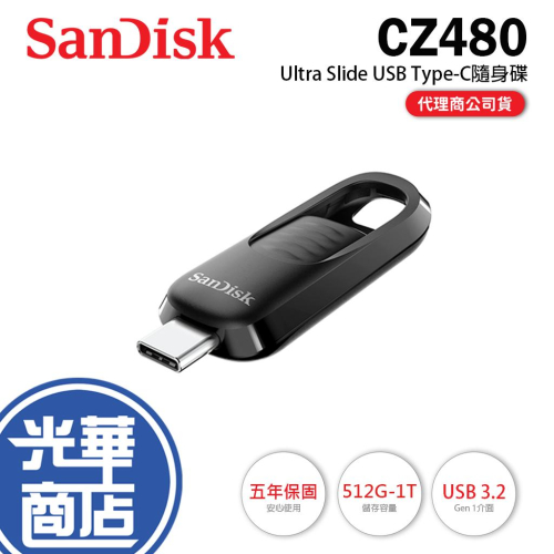 CZ480/Ultra Slider USB Type-C/512G/黑色/USB3.2 Gen1/超高速讀寫400MB/s