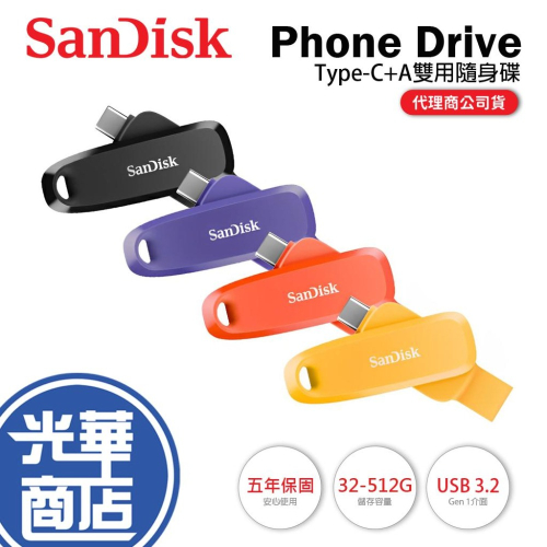 🔸SDDDC6/SanDisk Phone Drive Type C+A雙用/512G/USB3.2 Gen 1/高速讀取100MB/s 橘