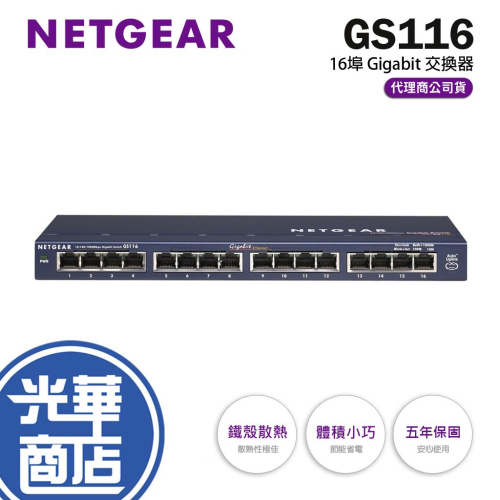 NETGEAR GS116 16埠Gigabit無網管型交換器