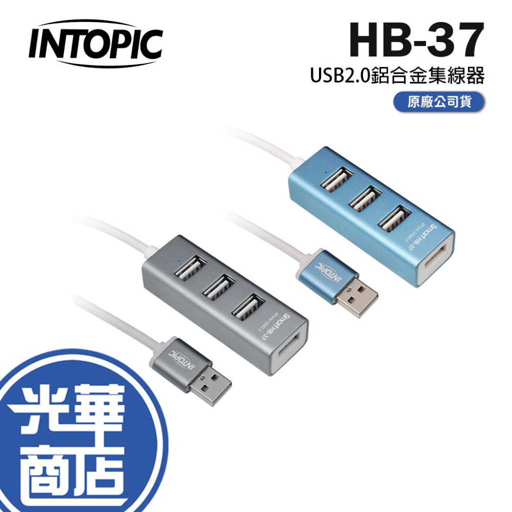 INTOPIC 廣鼎 HB-37 USB 2.0鋁合金集線器 灰 / 藍