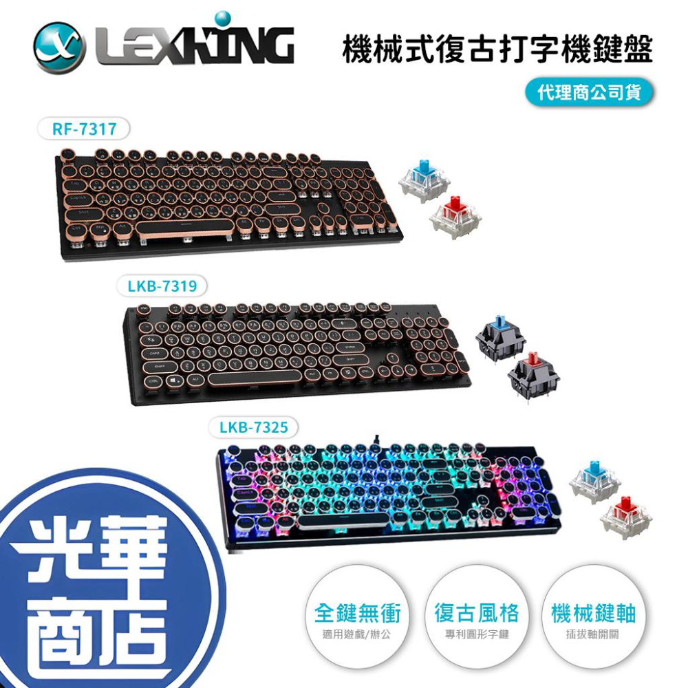 🔺Lexking LKB-7325 LKB-7325 光之鍵打字機鍵盤 (青軸/紅軸)