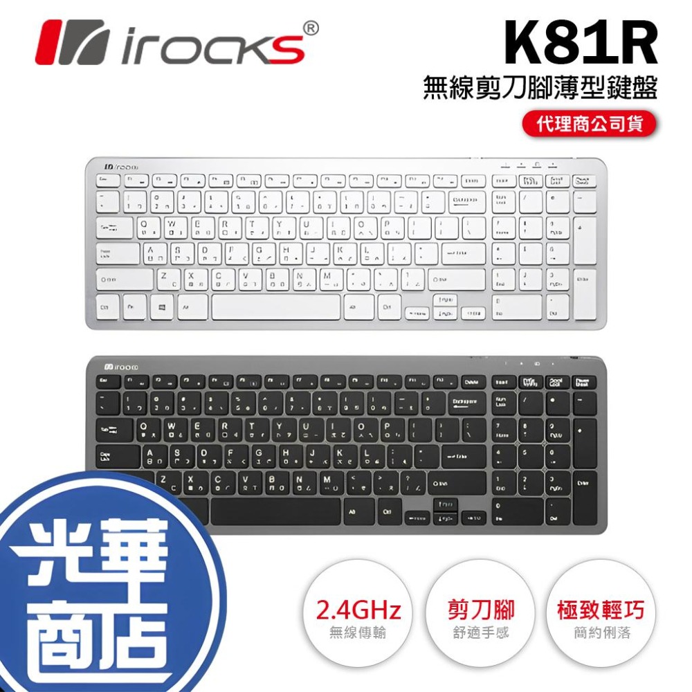 i-Rocks IRK100RP-無線2.4GHz靜音薄膜鍵鼠組-黑色