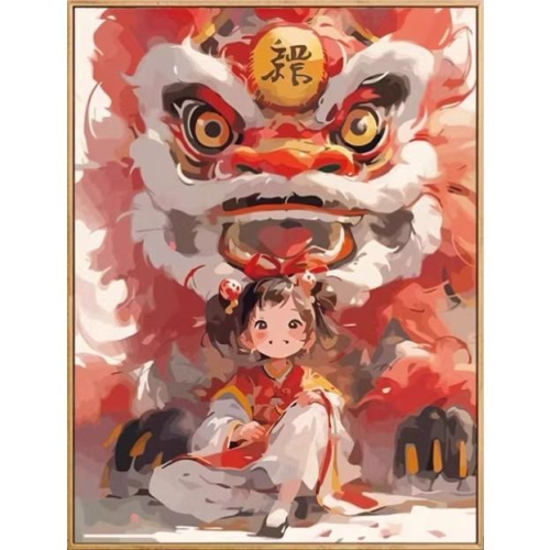 [台灣現貨含運]十字繡材料包50*63cm中格三股 醒獅女孩 滿繡 DIY 滿綉