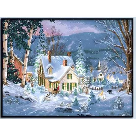 [台灣現貨含運]十字繡材料包 70*50cm 中格三股 聖誕雪景 手工自繡 DIY 手工簡單刺繡 滿繡