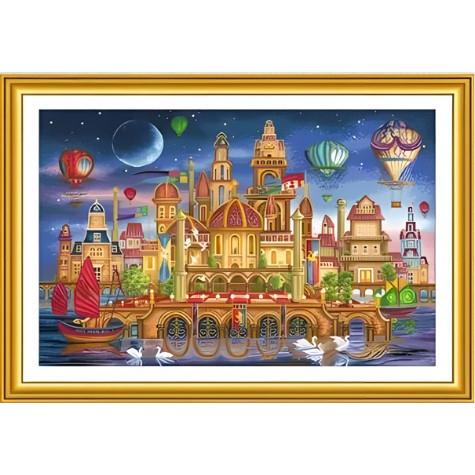 [台灣現貨含運]十字繡材料包80*60cm中格三股 夢幻城堡 歐式掛畫風景 臥室溫馨歐式圖 客廳新款臥室小幅手工自己繡