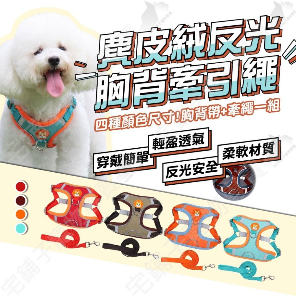 產品名稱:麂皮絨反光胸背牽引繩(胸背帶+牽繩一組)