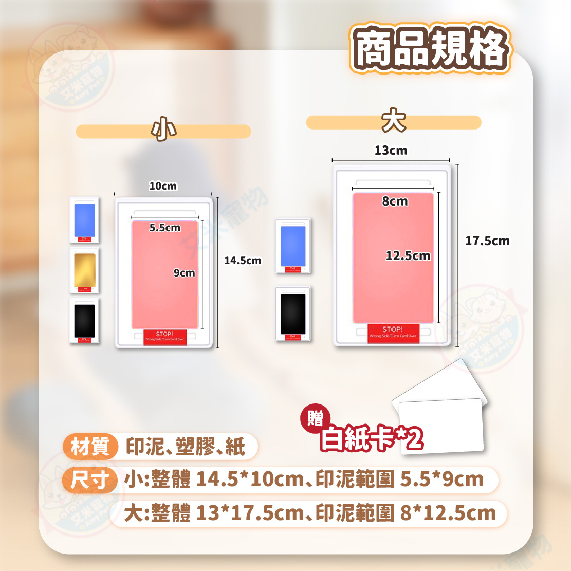 替毛孩清理腳掌後,卡紙印有標語面朝下對著卡紙,腳掌接著輕壓3秒即可~