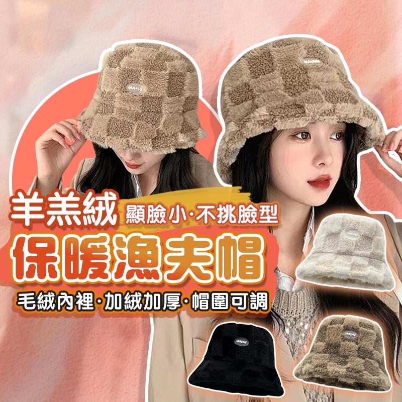 🔥台灣出貨🔥保暖漁夫帽 羊羔絨帽 羊羔毛帽 女漁夫帽 保暖毛帽 秋冬毛帽 毛絨帽 絨毛帽 格紋帽 漁夫帽 『小胖子購物』