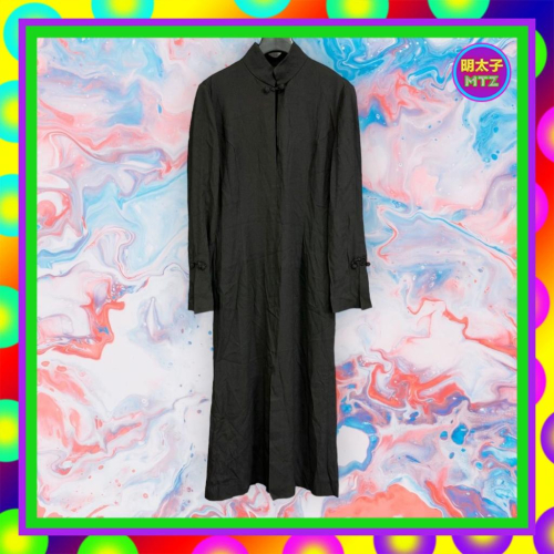 二手 日本製 Maiosn de Toiles 黑色 中國風 彈性 開衩 長袖 洋裝 F1214 【明太子 古著應召站】
