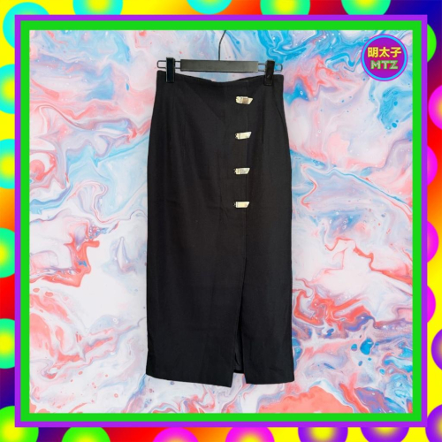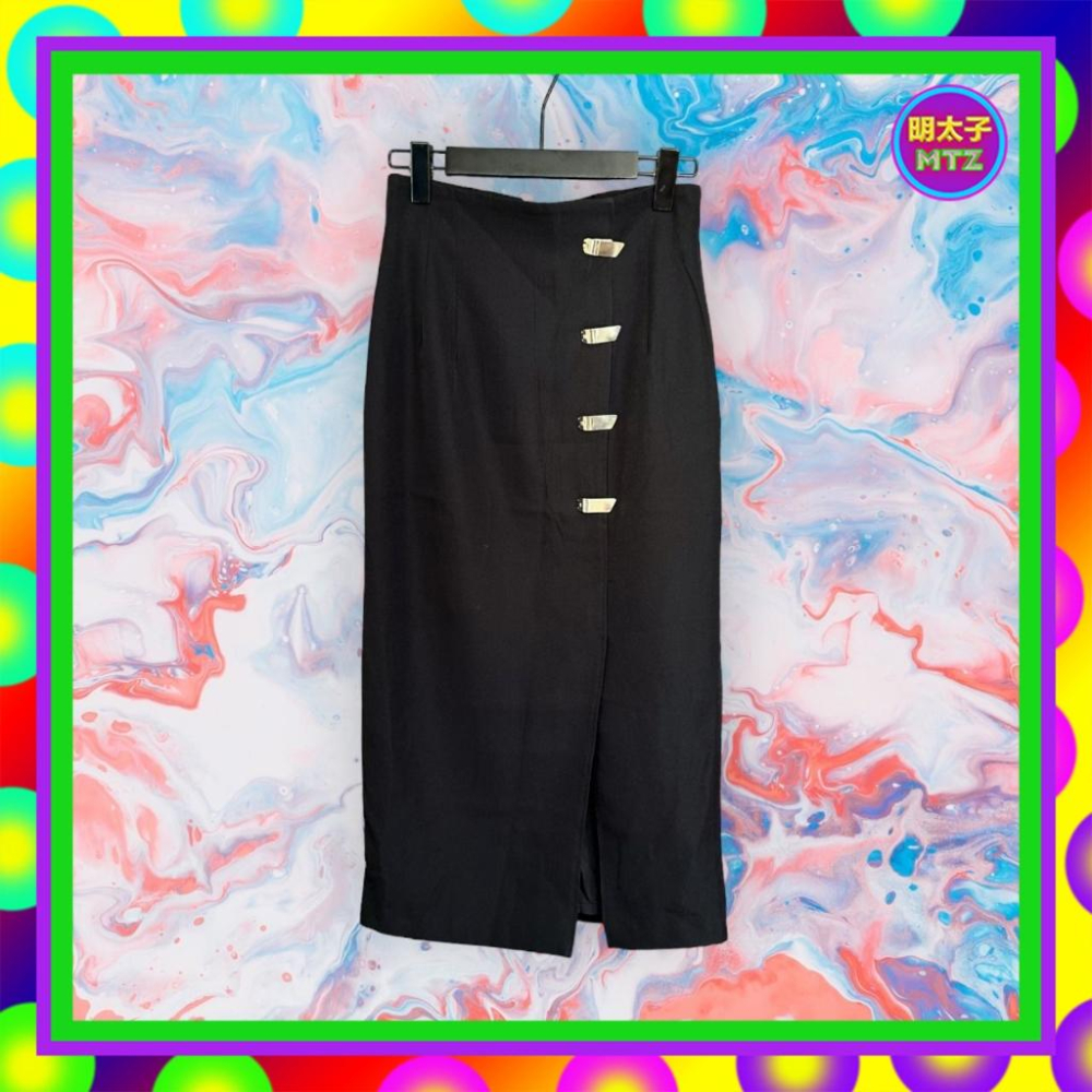 二手 ATT 黑色 輕薄 金湖壓釦 窄版 高腰 27 長裙 F1213 【明太子 古著應召站】