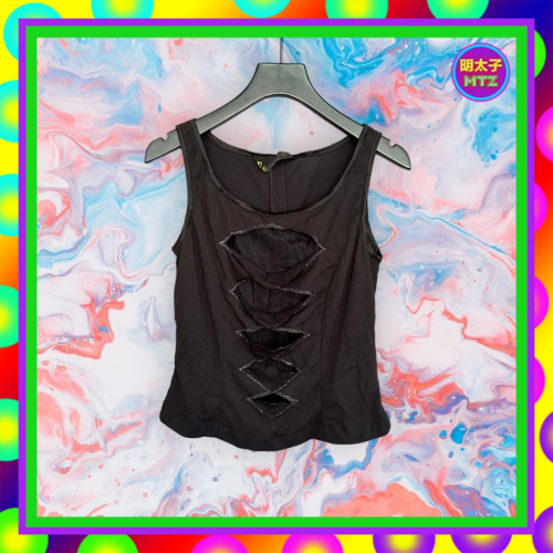 二手 FENNAIL 黑色 菱角網眼透洞 彈性 背心 F1213 【明太子 古著應召站】
