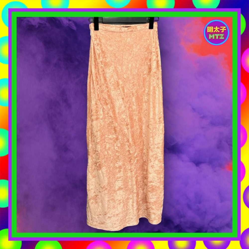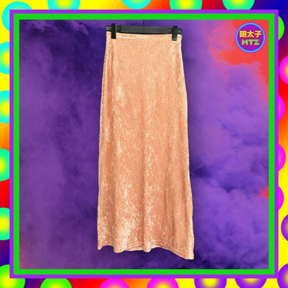 二手 FIZZ 粉橘色 絨布 彈性 高腰 24 長裙 F1204 【明太子 古著應召站】